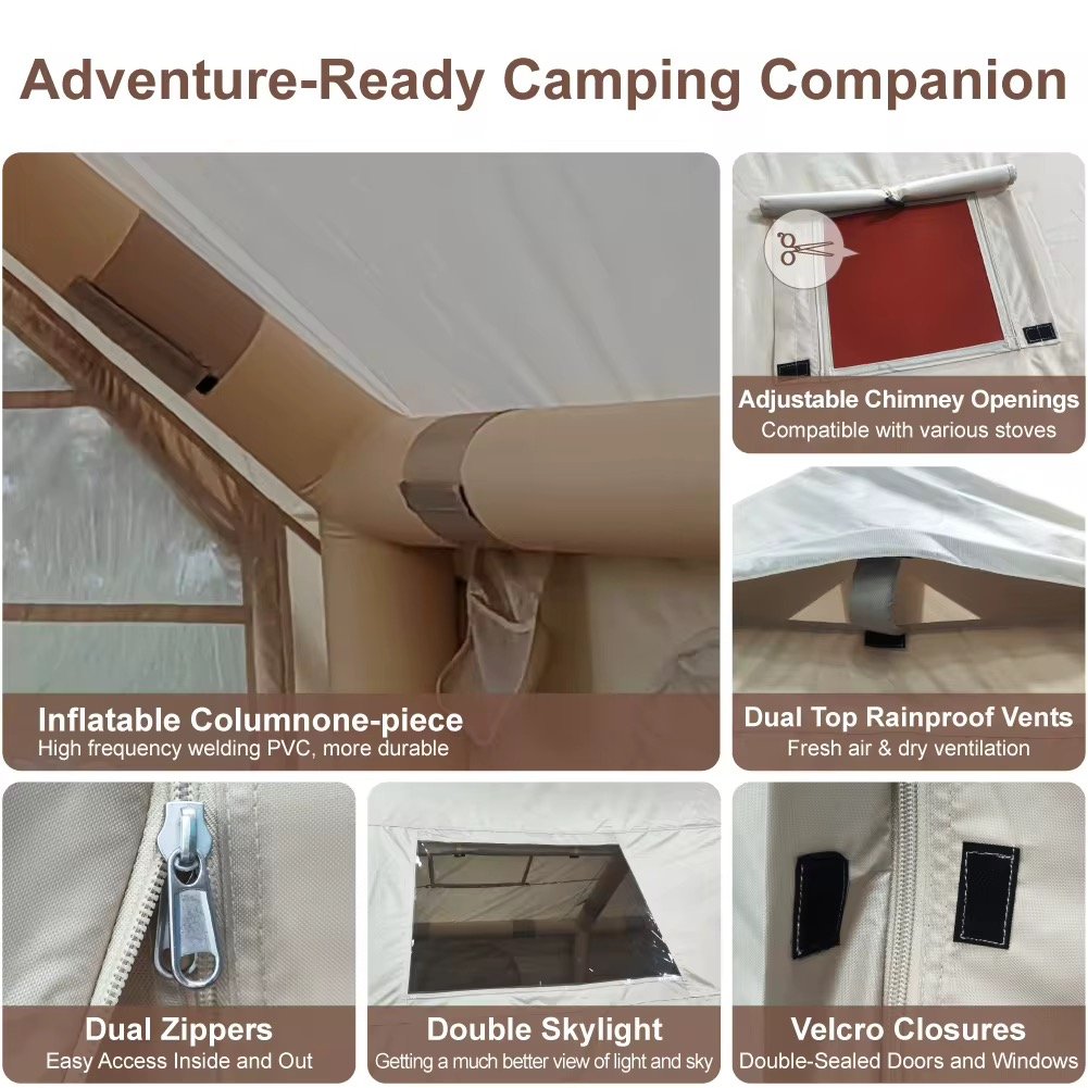 Experience the future of camping with the Tourus Inflatable Camping Tent , an innovative shelter designed for ultimate convenience and comfort. This tent features a unique inflatable frame, eliminating the hassle of traditional poles and making setup incredibly fast and easy.